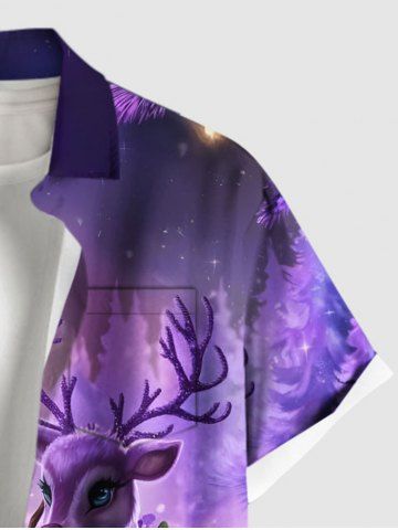 Chemise grande taille à imprimé galaxie, sapin de Noël, bonhomme de neige, élan, ombré, avec poche boutonnée, pour homme - Pourpre - Pourpre