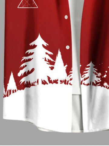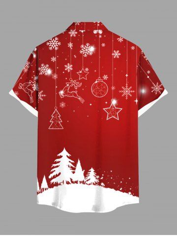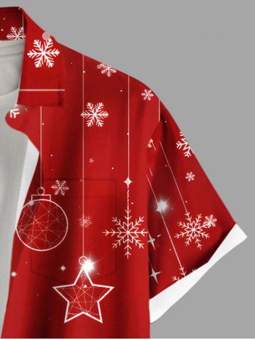 Chemise grande taille à imprimé sapin de Noël, boules, flocons de neige, élans, avec poches boutonnées pour homme - Rouge - Rouge