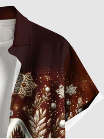 Chemise grande taille à imprimé sapin de Noël, flocon de neige, maison en pain d'épices, boutonnée et poche pour homme - Brun Légère - Marron Clair