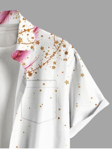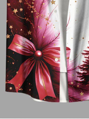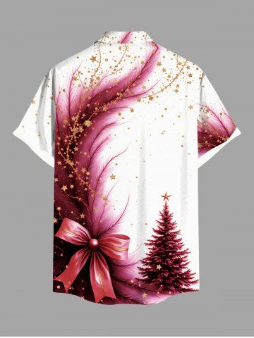 Vêtements Homme> Chemise grande taille à imprimé sapin de Noël, nœud papillon, plumes et étoiles, avec poche boutonnée pour homme