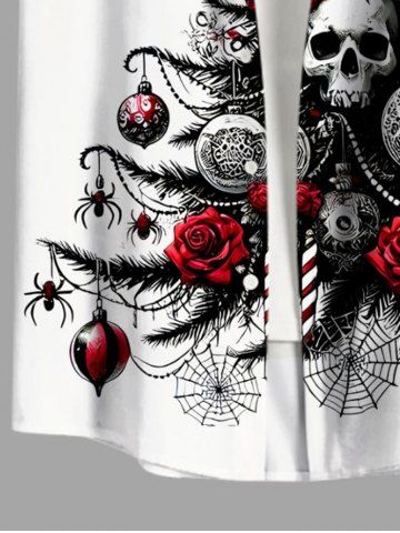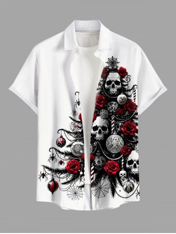 Chemise grande taille à imprimé tête de mort, rose, fleur, toile d'araignée, sapin de Noël, boule, bouton, poche, pour homme - Blanc - Blanc