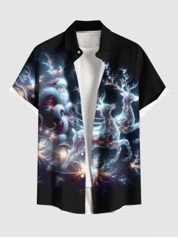 Vêtements Homme > Chemise grande taille homme à boutons et poche, imprimé galaxie pailletée, motif élan et Père Noël, avec motif galaxie et élan.