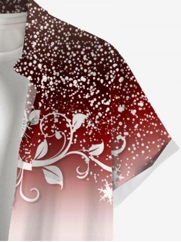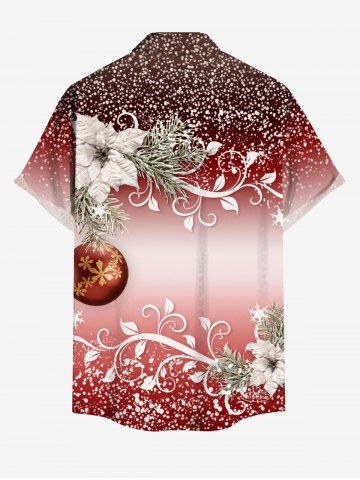 Chemise grande taille pour homme avec imprimé ombré de boules de Noël, flocons de neige, fleurs et branches, et poche boutonnée. - Rouge - Rouge