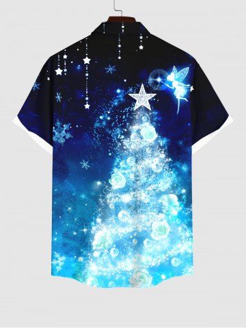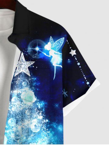Chemise Imprimé Élément de Noël à Glands Grande Taille avec Poches pour Homme - Bleu Ciel - Bleu Ciel