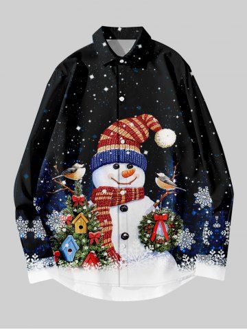Chemise Imprimé Élément de Noël à Manches Longues Grande Taille - Noir - Noir