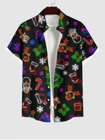 Chemise Imprimé Élément de Noël avec Poches Grande Taille - Noir - Noir