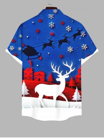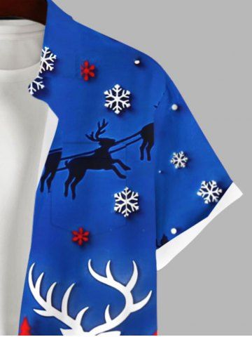 Chemise Imprimé Maison Élans Père Noël et Flocons de Neige Grande Taille avec Poche pour Homme - Bleu Ciel - Bleu Ciel