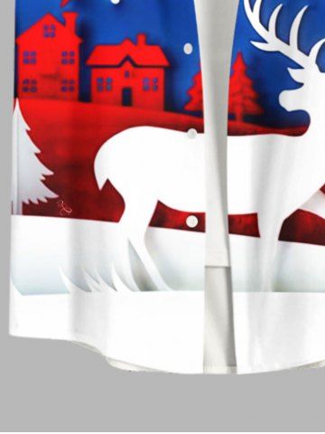 Vêtements Homme> Chemise Imprimé Maison Élans Père Noël et Flocons de Neige Grande Taille avec Poche pour Homme