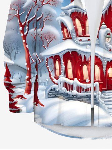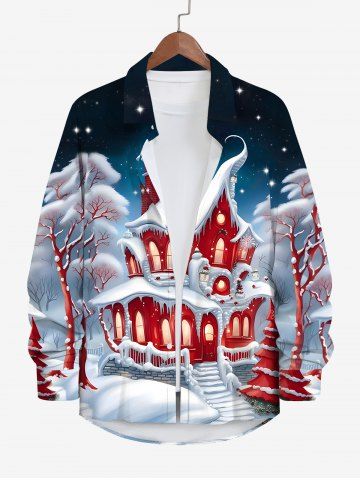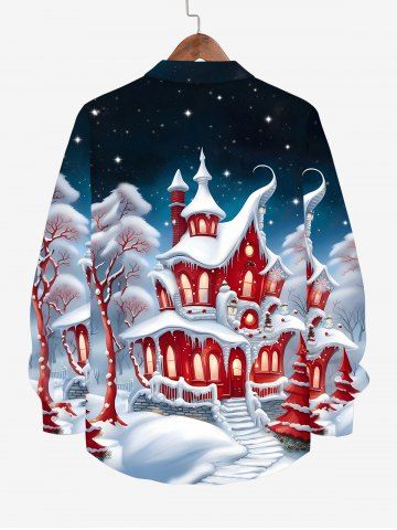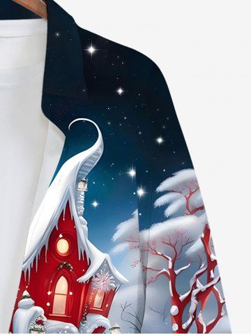 Chemise Manches Longues avec Boutons et à Imprimé Sapins de Noël et Etoiles dans la Galaxie Grande-Taille pour Hommes - Multi-a - 7xl