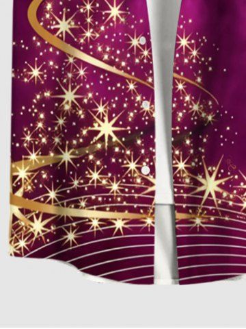 Chemise Manches Longues Brillante à Imprimé Sapins de Noël et Flocons de Neige Grande-Taille pour Hommes - Pourpre - Pourpre