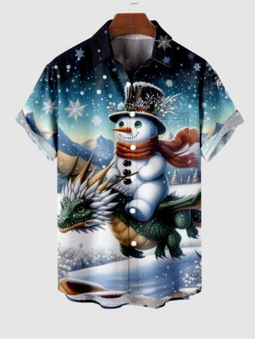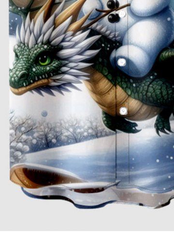 Chemise Ombre Imprimé Dragon et Flocon de Neige de Noël Grande Taille avec Poche pour Homme - Multi-a - M
