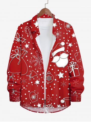 Chemisier à Boutons avec Poche et à Imprimé Père Noël Chaussette Etoile et Flocons de Neige Grande-Taille pour Hommes - Rouge - Rouge