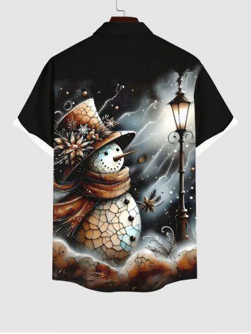 Vêtements Homme> Chemisier avec Boutons et Poches à Imprimé Bonhomme de Neige et Fleurs Grande-Taille pour Hommes