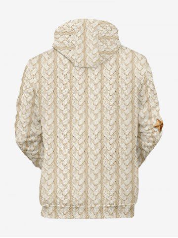 Plus Size Christmas Hat Elk Cable Knit 3D Print Pocket Drawstring Hoodie For Men - Café Lumière - 4xl