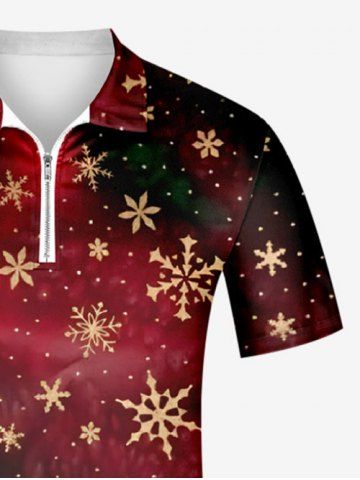 Plus Size Christmas Snowflake Floral Pin Dot Tie Dye Ombre Print Zipper Polo Shirt For Men - Rouge Foncé - 4xl