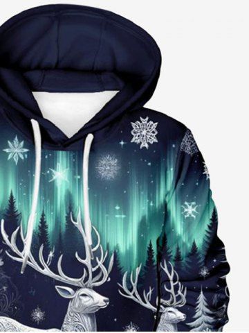 Plus Size Christmas Tree Elk Snowflake Glitter Light Beam 3D Print Pocket Drawstring Hoodie For Men - Noir - Noir