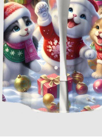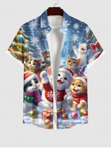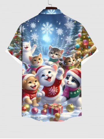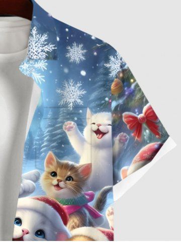 Plus Size Christmas Tree Snowflake Glitter Galaxy Cute Cat Print Button Pocket Shirt For Men - Multi-a - 2xl