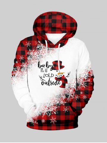 Vêtements Homme> Sweat à Capuche à Carreaux Bonhomme de Neige Flocon de Neige et Poche de Grande Taille pour Homme