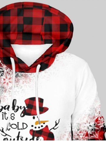 Sweat à Capuche à Carreaux Bonhomme de Neige Flocon de Neige et Poche de Grande Taille pour Homme - Rouge - Rouge