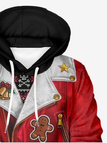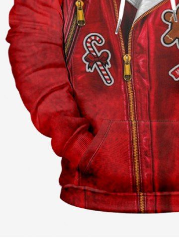 Sweat à capuche à manches longues imprimé motif pain d'épice de Noël grande taille pour hommes - Rouge - Rouge