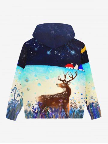 Sweat à capuche grande taille pour homme, imprimé floral élan bulle galaxie dégradé Noël, poche zippée et cordon de serrage - Multi-a - L