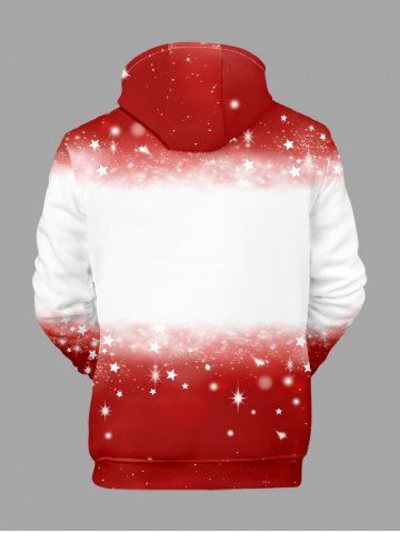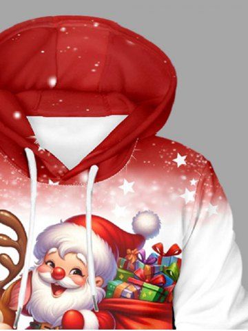 Sweat à capuche grande taille pour homme, imprimé Père Noël, élan et étoiles, poche et cordon de serrage - Rouge - Rouge