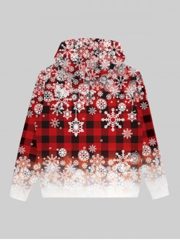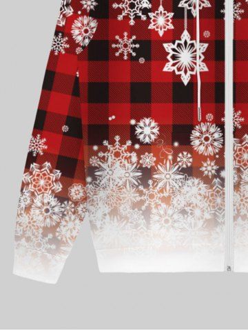 Sweat à Capuche Imprimé Géométrique et Flocon de Neige à Carreaux avec Poche Zippée Grande Taille à Manches Longues pour Homme - Rouge - Rouge