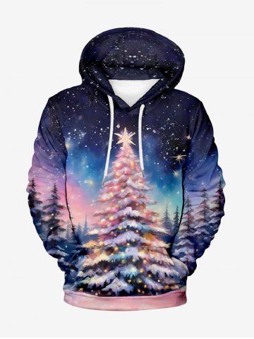 Sweat à Capuche Imprimé Glaxie Arbre de Noël 3D Grande Taille avec Poche Kangourou - Multi-a - M