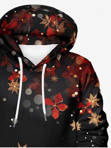 Sweat à Capuche Long Imprimé Pois Floral Brillant Grande Taille pour Homme - Noir - Noir