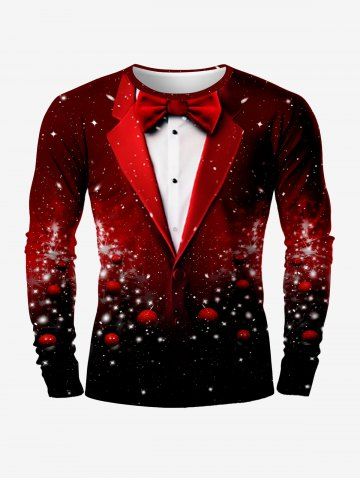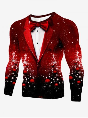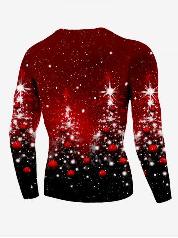 T-shirt 3D Boule Etoile Sapin de Noël et Flocon de Neige Imprimés de Grande Taille à Paillettes - Rouge - Rouge