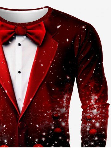 T-shirt 3D Boule Etoile Sapin de Noël et Flocon de Neige Imprimés de Grande Taille à Paillettes - Rouge - Rouge