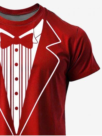 T-shirt de Noël Nœud Papillon Imprimé de Grande Taille à Col Revers - Rouge - Rouge