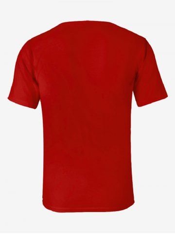 T-shirt de Noël Nœud Papillon Imprimé de Grande Taille à Col Revers - Rouge - Rouge
