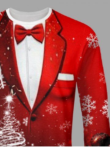 T-shirt Imprimé Glaxie Arbre de Noël 3D à Manches Longues Grande Taille - Rouge - Rouge